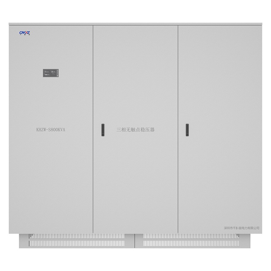 KHZW-S800KVA无触点三相稳压器,采用微电脑程序控制、全自动稳定输出。具有:稳压速度快、精度高、三相分调、大功率、全自动智能稳压、无机械磨损、无机械故障、免维护、使用寿命长、运行稳定等特点,适用:医疗、纺织、印刷、机械加工、工业制造、通讯交通、船舶码头、商业、住宅等电压不稳定的场所及对电压精度要求高的设备。