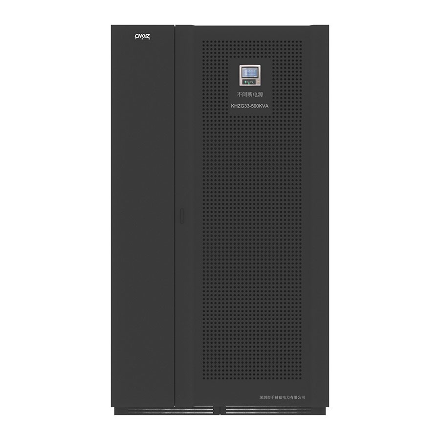 KHZG33-500KVA 工频三进三出UPS不间断电源 | I/P:3L+N+G 380V±25% (或定制) O/P:3L+N+G 380V±1% (或定制) | 1680 | 1210× 1000× 1800 |
