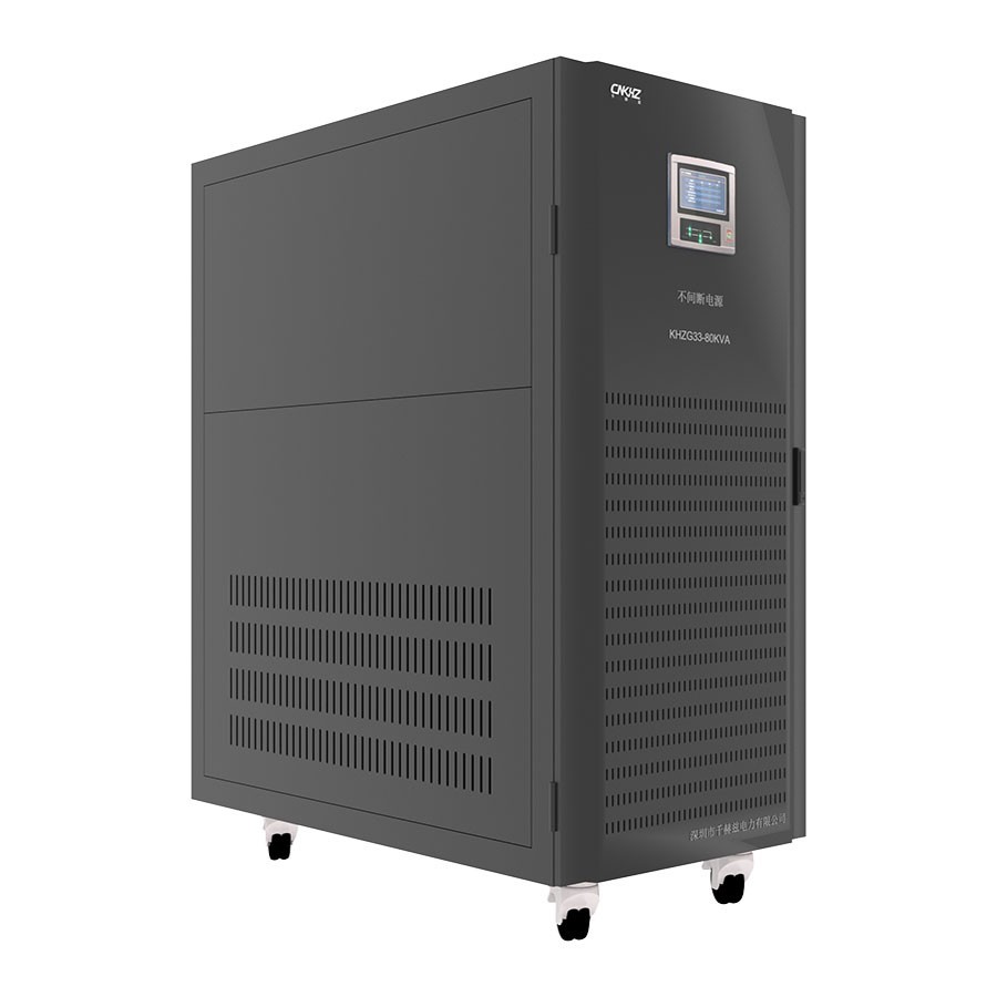 KHZG33-80KVA 工频三进三出UPS不间断电源 | I/P:3L+N+G 380V±25% (或定制) O/P:3L+N+G 380V±1% (或定制) | 365 | 450× 830× 1160 |